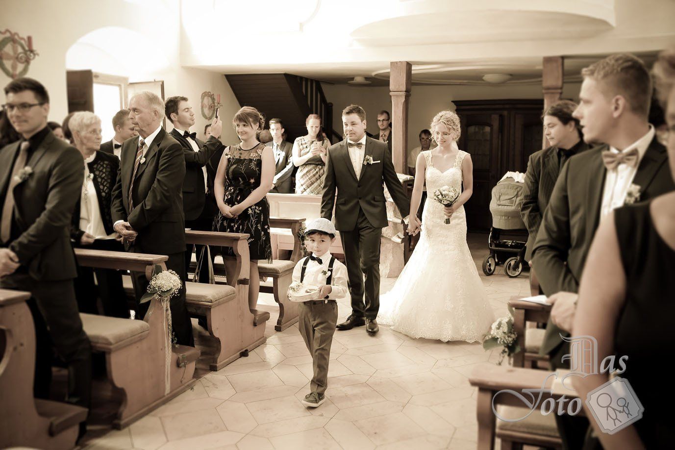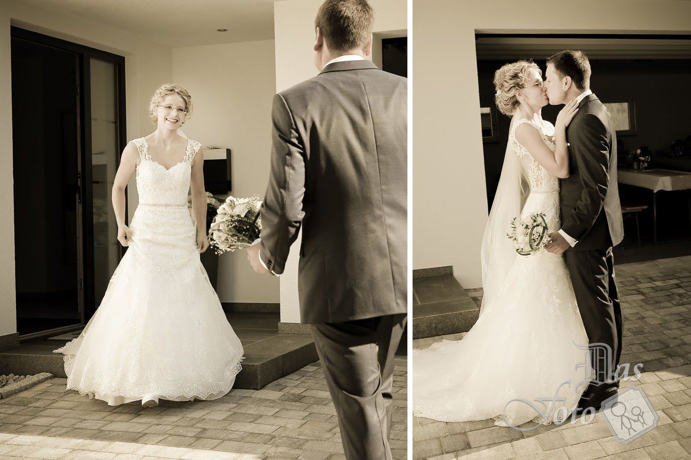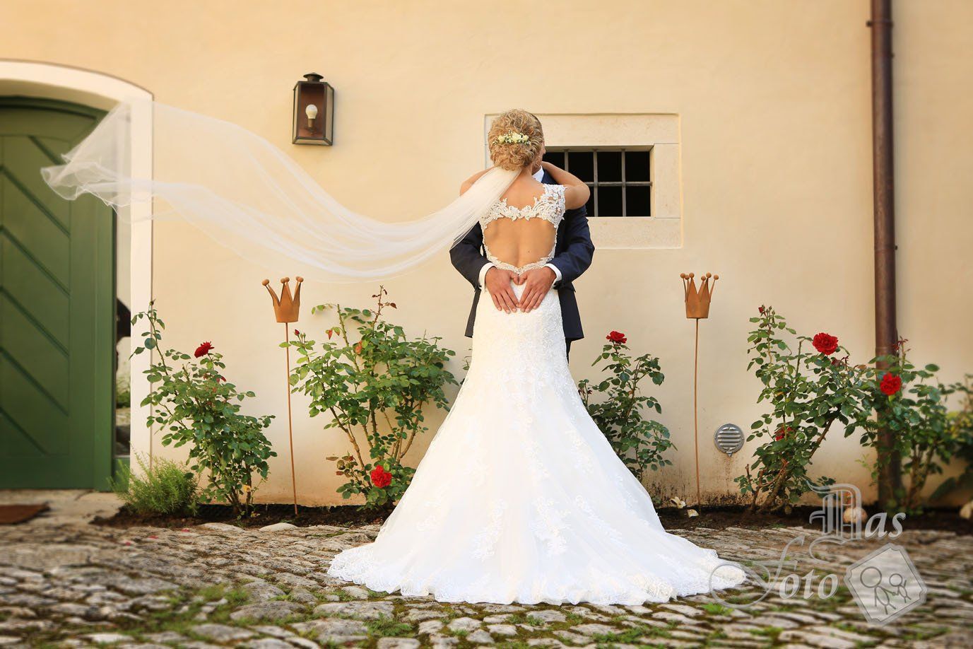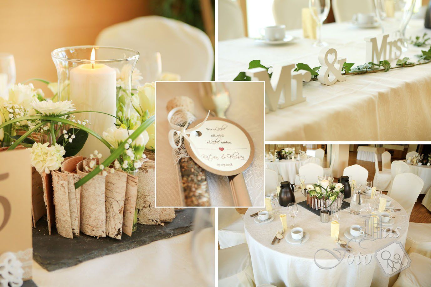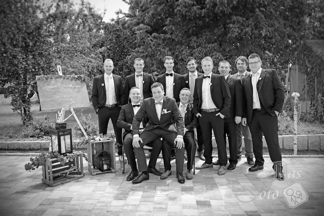 Unglaublich viel Mühe steckte in der Hochzeit von der Katrin und dem Florian. Da hat die die Perfektion liebende Katrin eine märchenhafte Deko gezaubert, im kleinsten Detail noch stimmig. Ich finde, dass ein Hochzeitsfotograf diese viele Mühe in den Fotos unbedingt festhalten sollte. Vor der Trauung waren heute meine Kletterkünste gefragt, denn für das Gruppenfoto stand ich auf dem Bushäusl. Gefeiert wurde in dem schon fast mondänen Hotel Dirsch in Emsing.